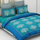 SheetKart Floral Cotton Printed Jaipuri Double Bedsheet with 2 Pillow Covers, Blue
