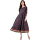 • Navy and pink printed straight kurta, has a stylised mandarin collar with a short button placket, three-quarter sleeves, straight hem, side slits