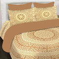 SheetKart 144 TC Cotton Printed Jaipuri King Size Double Bedsheet with 2 Pillow Covers, Cocoa Brown